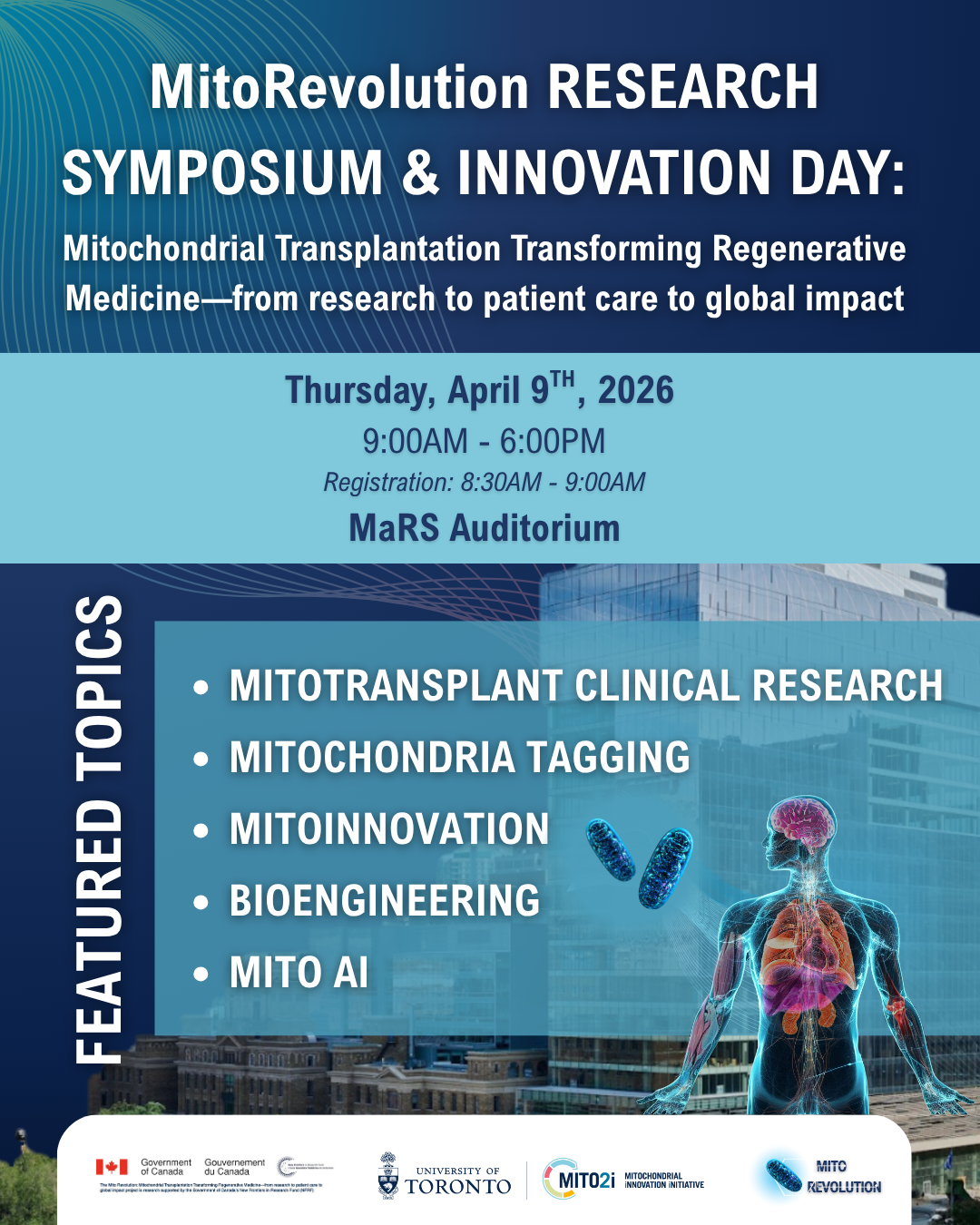Join us on Thursday, April 9th, 2026 for the MitoRevolution Symposium in the MaRS Auditorium!